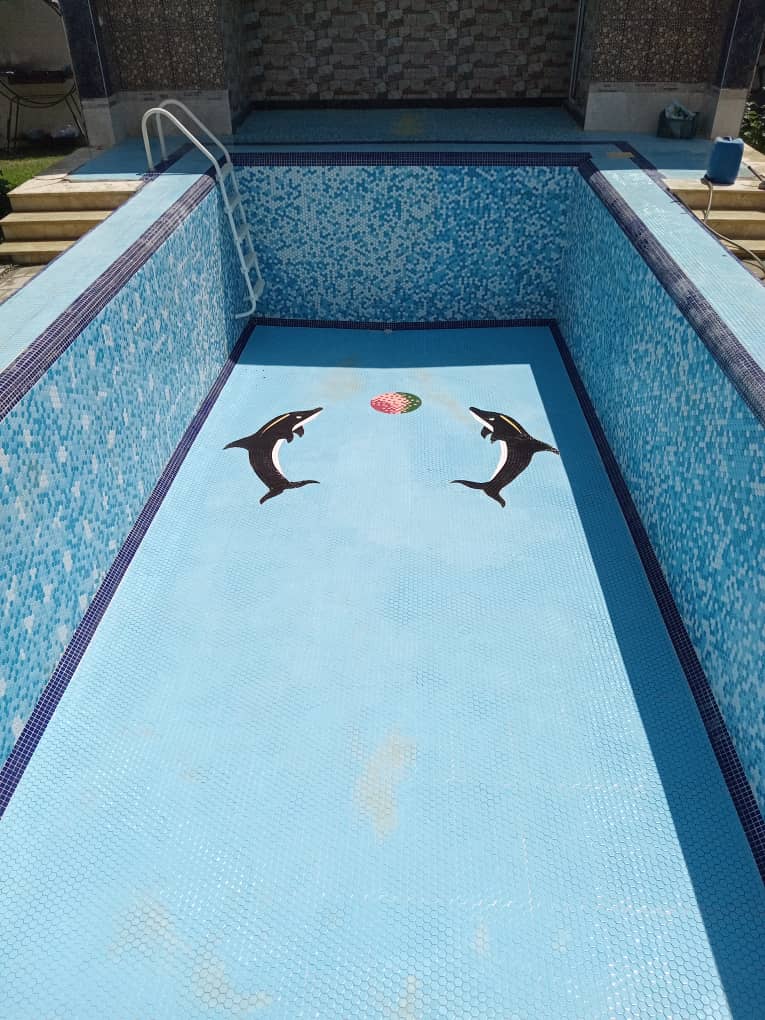 و درمرحله اول استخر را تاژنصفه آب میریزیم